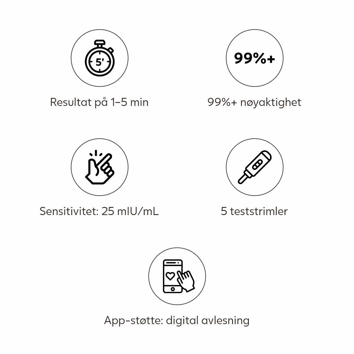 Du trenger ikke å bruke appen for å lese av testresultatet. Se bruksanvisningen for hvordan testen tolkes manuelt. Appen er kun utviklet for å hjelpe deg med å lage en tidsplan rundt eggløsningen, slik at du får best mulige sjanser for å bli gravid. Appen gir også tips, påminnelser når det er tid for å teste, og lagrer bilder av resultatene fra alle utførte tester.